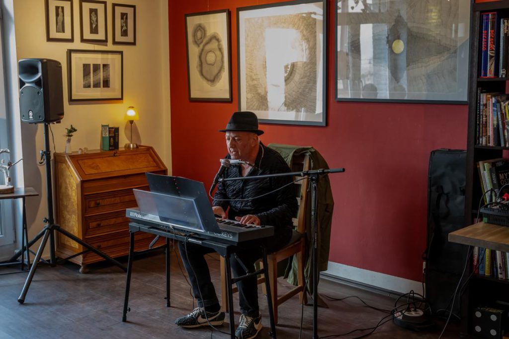 Andre Kemnitz-Voigt hat auch eine lebendige Vergangenheit. – War zunächst Schauspieler, – in der DDR einer der raren aktiven Pantominen, – Betrieb lange eine Szenekneipe im PrenzlBerg. Später dann wurde er zu dem was als Marke AKV bekannt wurde: War Supporter, Organisator und Impressario für Kunst und Kultur.