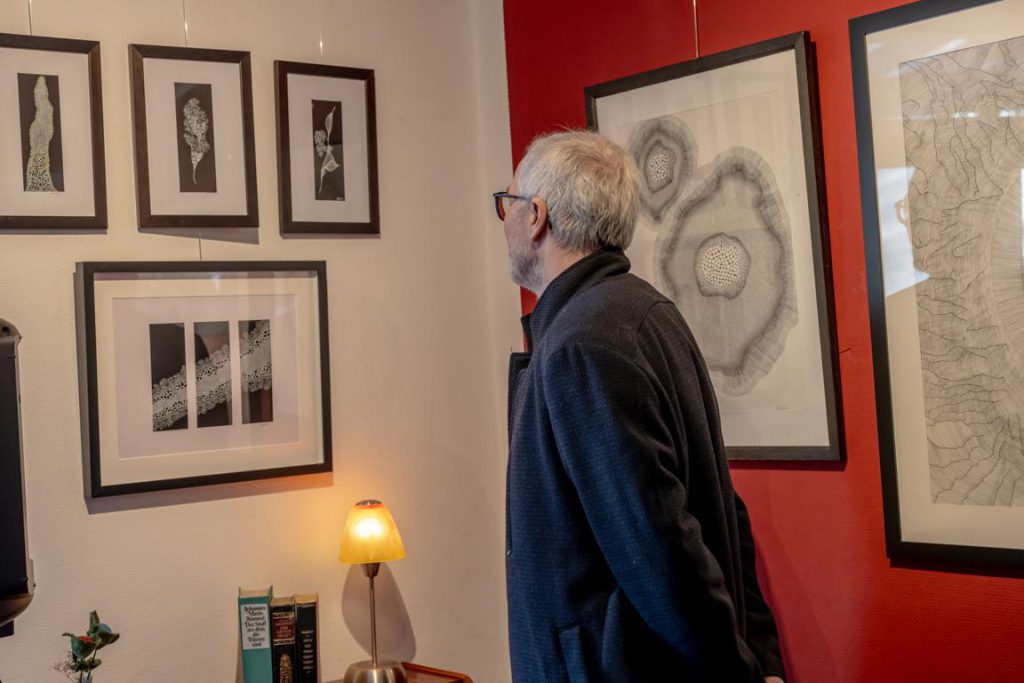 Irgendwann tauchten dann immer öfter grafische Dinge von ihm auf. – Wir bemerkten kleine Skizzen. – Es begann zart und auf A5, wurde dann größer, – A4, A3, – mehr Farben kamen ins Spiel. Plötzlich war ich bei einigen seiner Werke wie vom Donner gerührt. Und Patti und ich sagten: André gestehe, du malst!